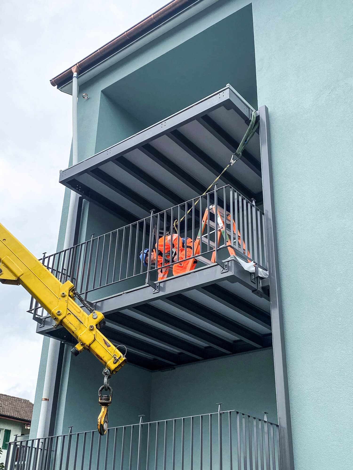 Am Girixweg in Aarau realisierten wir die komplette Montage einer Balkonanlage. Beginnend mit der Stahl-Unterkonstruktion, über die Verlegung der Bodenplatten, bis hin zur Montage der Geländersysteme.
